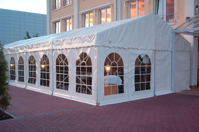 - Partyzelt, 4 x 8 Meter, 32 m² - Platz für 8 Garnituren (80 Personen)