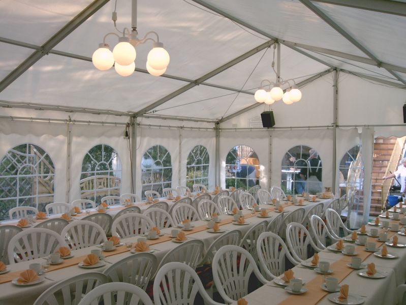 - Partyzelt, 6 x 9 Meter, 54 m² - Platz für 14 Garnituren (140 Personen)